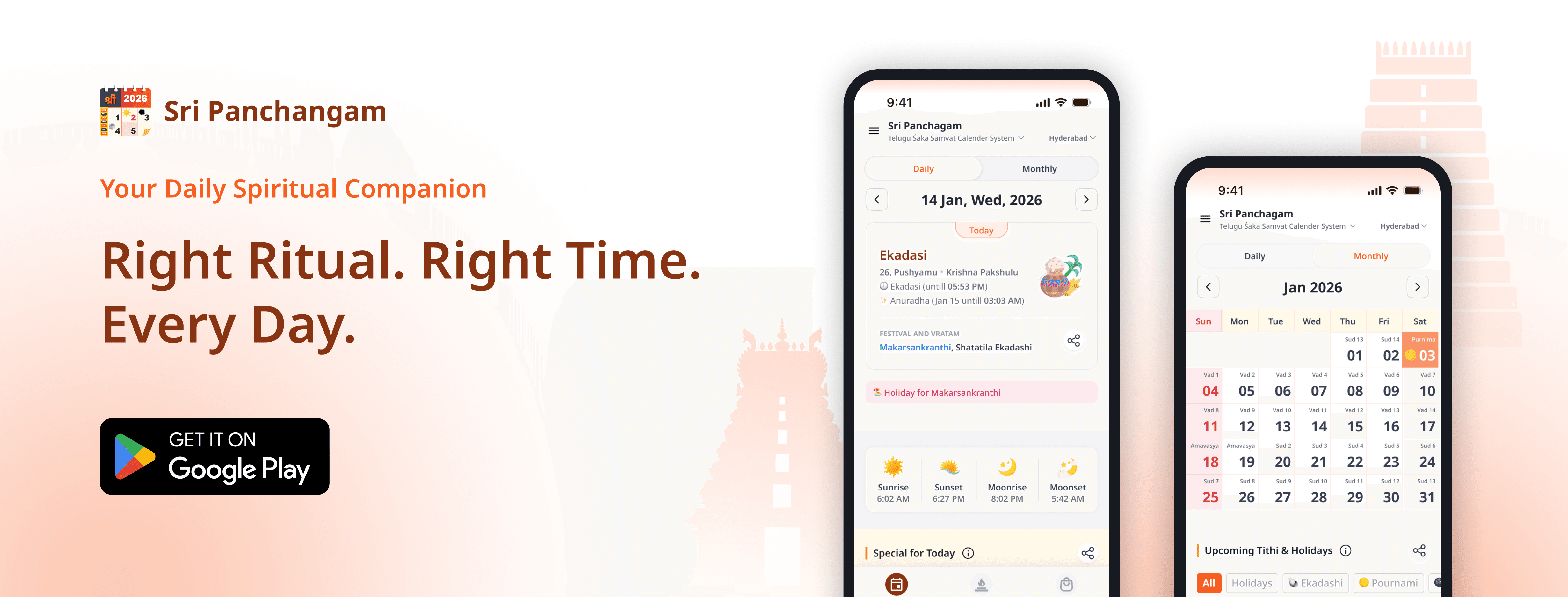 Whether you follow the Panchangam daily or book sevas for special Tithis, Sri Panchangam keeps you connected to your traditions — in the language and way you know.